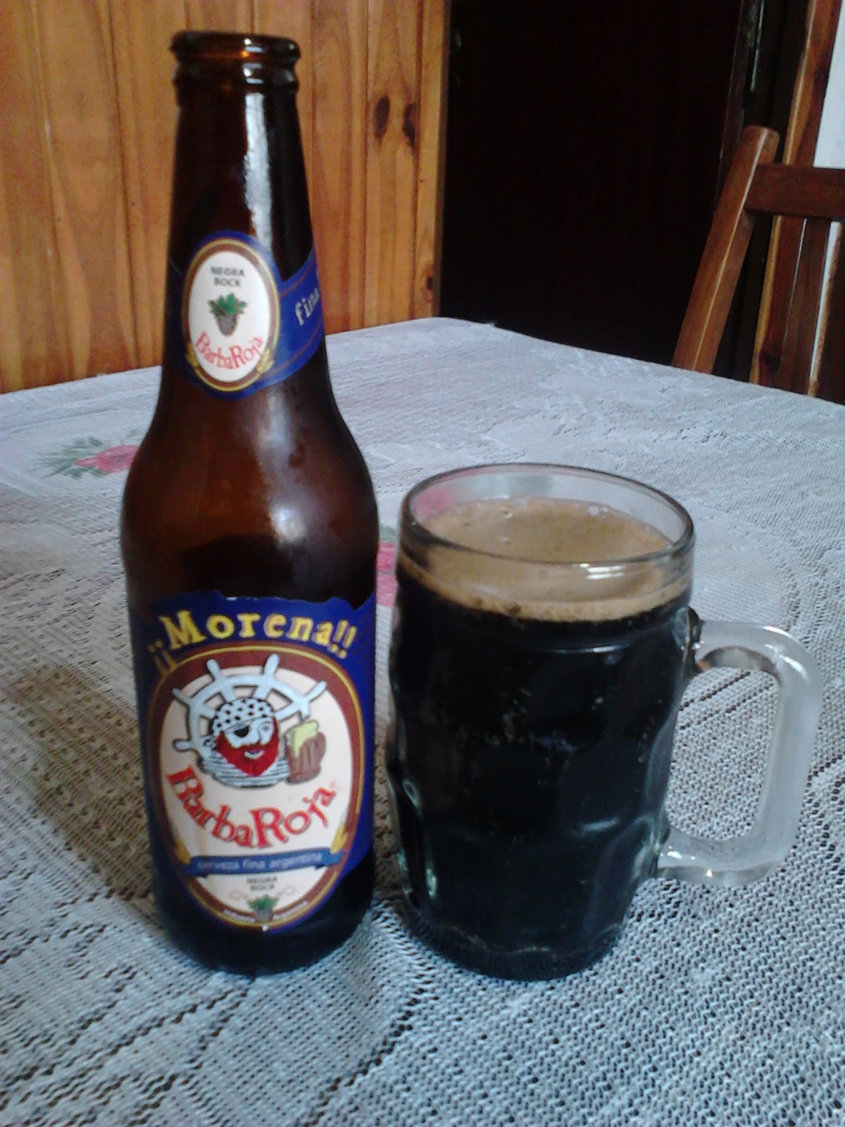 Esta cerveza artesanal de Escobar Buenos Aires, contiene según su etiqueta 4.5 de graduación alcohólica, aunque al beberla se siente como si tuviera un poco mas dado que se la percibe un poco mas fuerte comparada con cervezas de esa misma graduación. Además leyendo su etiqueta nos esteramos que Morena es una "Negra Bock". De color podemos decir que es de una tonalidad negra brillante (muy similar al de la Coca Cola) para nada traslucida, sino mas bien un negro bien consistente. Al ser servida, hace una agradable cantidad de espuma de una tonalidad marrón clara, pero se disipa muy rápido. En cuanto al aroma se la percibe algo frutal entremezclado con malta y notas dulces. Del gusto podemos decir que esta perfectamente balanceada (no es ni dulce ni amarga) con unas muy leves notas cítricas finales que la hacen tener personalidad. Tanto la gasificación que es muy adecuada, como el cuerpo algo cremoso y con dejos de manteca, terminan complementando un cerveza prácticamente excelente y equilibrada. Nota: 10 puntos.